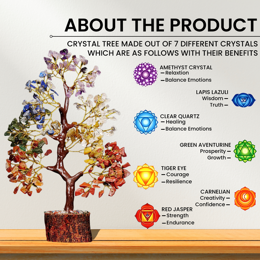 Seven Chakra Gemstone Tree Natural Crystal 150 Beads Feng Shui Wealth Tree 7 Chakra Home Decor Healing- Inditrend