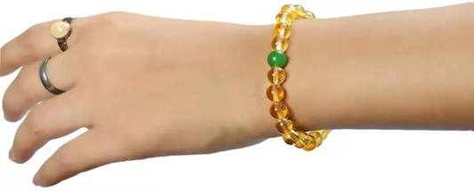 Natural Citrine Stone Bracelet with Green Jade Bead: Wealth & Prosperity for Men, Women & Kids