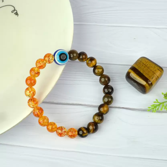 Tiger Eye with Citrine & Evil Eye Round Bead Bracelet : A Bracelet for Protection, Positivity & Success for both Men & Women